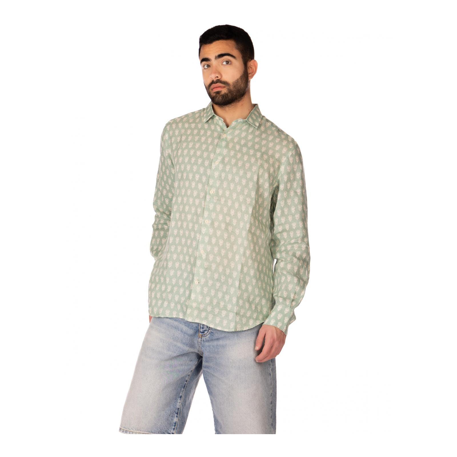 La camicia Pamplona è impreziosita da graziose microfantasie all over, perfette per uno stile shabby chic. Realizzata in lino 100%, questa camicia a maniche lunghe da uomo presenta una vestibilità regolare e un colletto alla francese, emanando un'atmosfera rilassata e disinvoltamente elegante. Il tessuto traspirante garantisce comfort nei climi più caldi, rendendolo la scelta ideale sia per occasioni casual che semi-formali. La sottile ma intricata micro stampa all over aggiunge un tocco di raffinatezza a qualsiasi completo.