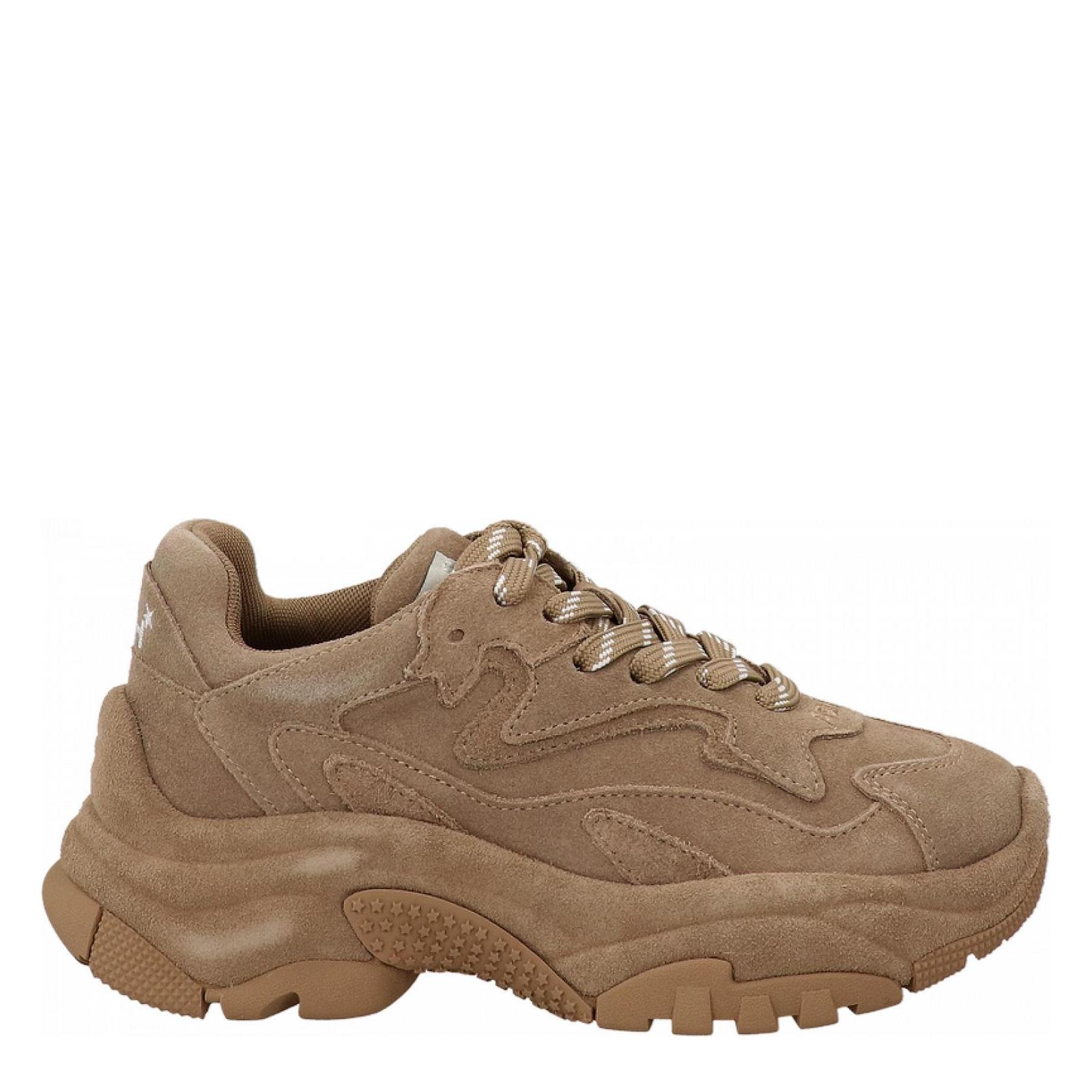 La sneakers must have, sempre presente nelle collezioni di Ash per il suo carattere sportivo ma versatile. Infinitamente rivisitata rimane sempre attualissima. Realizzata interamente in pelle scamosciata, presenta una suola chunky ton sur ton con battistrada in gomma antiscivolo. Fodera interna in tessuto con soletta imbottita ed estraibile. Altezza suola 5 cm.